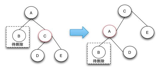 - 如果C是左节点,将C节点进行右旋,转换成case2,再左旋就可以了。
