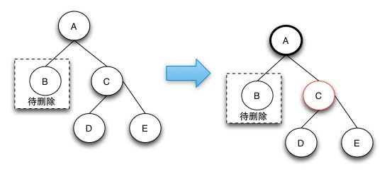 - 1、把父亲节点另一边(即删除节点的兄弟树)其中一个节点弄成红色,也少了一个黑色。