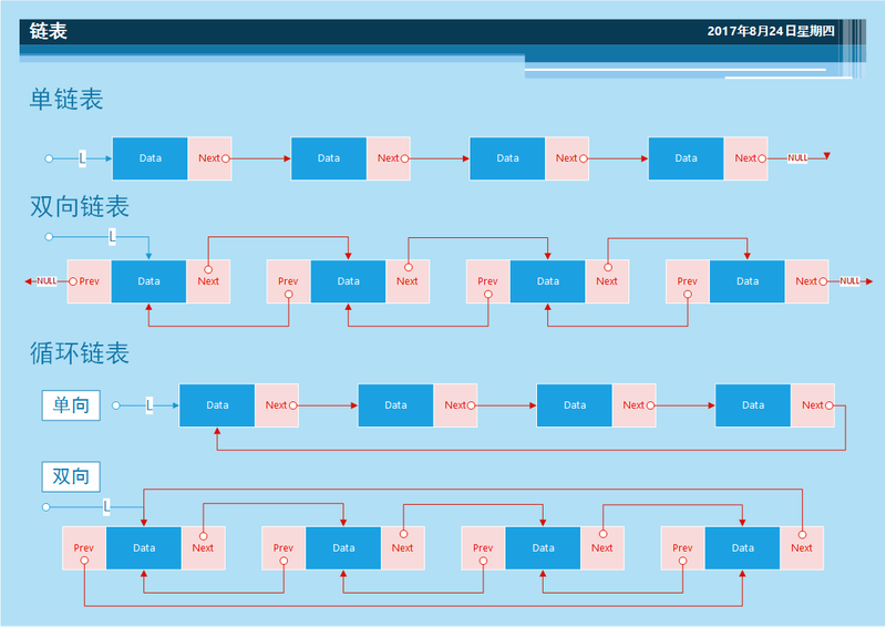 - 双链表的主要优点是对于任意给的结点,都可以很轻易的获取其前驱结点或者后继结点,而主要缺点是每个结点需要添加额外的next域,因此需要更多的空间开销,同时结点的插入与删除操作也将更加耗时,因为需要更多的指针指向操作。