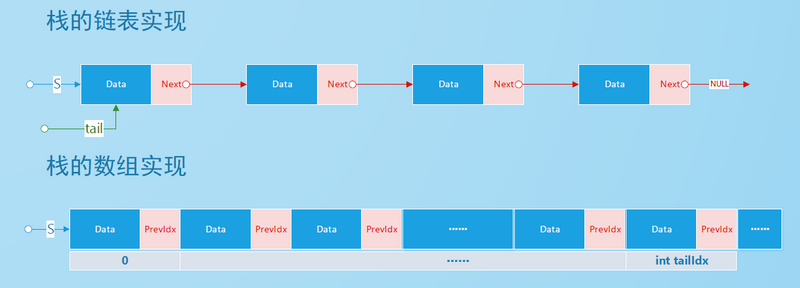 - 链式栈(Linked Stack),就是采用链式存储结构的栈,由于我们操作的是栈顶一端,因此这里采用单链表(不带头结点)作为基础即可。